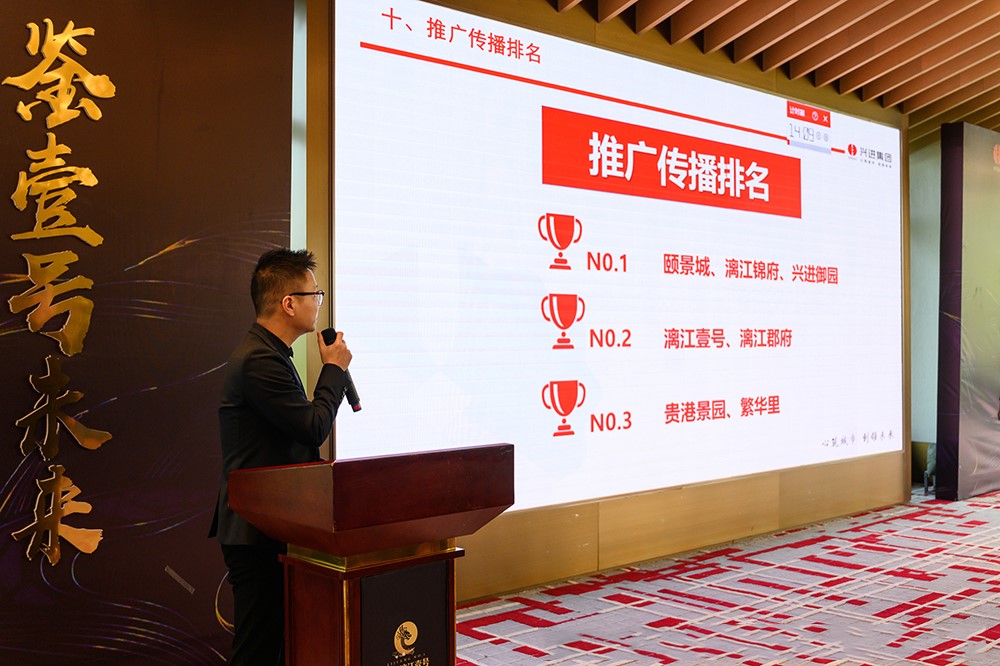 頒獎(jiǎng)儀式結(jié)束后,興進(jìn)集團(tuán)助理總裁王昆先生對(duì)大會(huì)做出全面到位的總結(jié),他首先對(duì)全體營(yíng)銷人員在一季度的辛苦付出,表示衷心的感謝。從對(duì)指標(biāo)存有敬畏之心、營(yíng)銷要整合資源、執(zhí)行力等方面闡述觀點(diǎn),希望未來(lái)能與大家一起勇攀高峰,尋找一個(gè)又一個(gè)的可能。