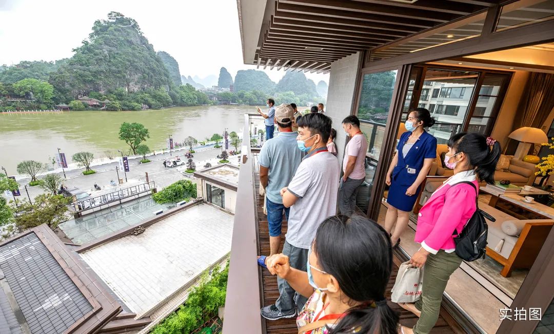 漓江風光讓人眼前一亮,園中景色同樣令人沉醉。漓江郡府園林,重現(xiàn)桂林八景的盛世風貌,漫步于庭院,便能體味別樣的桂林山水文化。“太美了,家樓下的風景就那么好,十分憧憬以后在興進的生活。”不少賓客表達了自己的喜愛,紛紛拿出手機拍下美景。