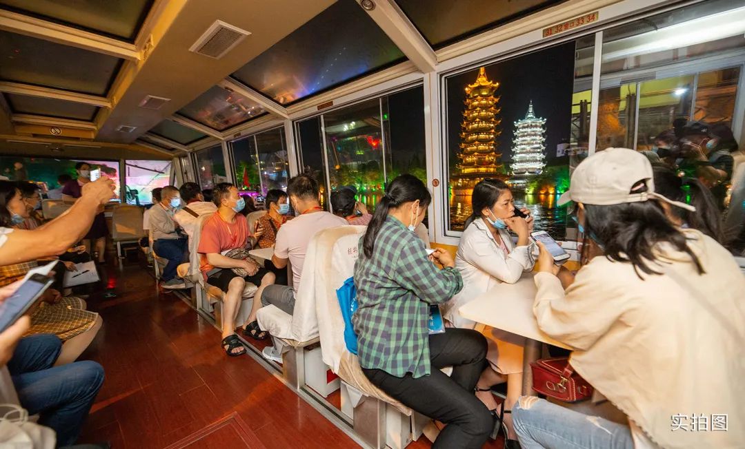 夜幕降臨,興進為賓客安排了乘船夜游四湖,飽覽桂林市區(qū)的精華景觀。