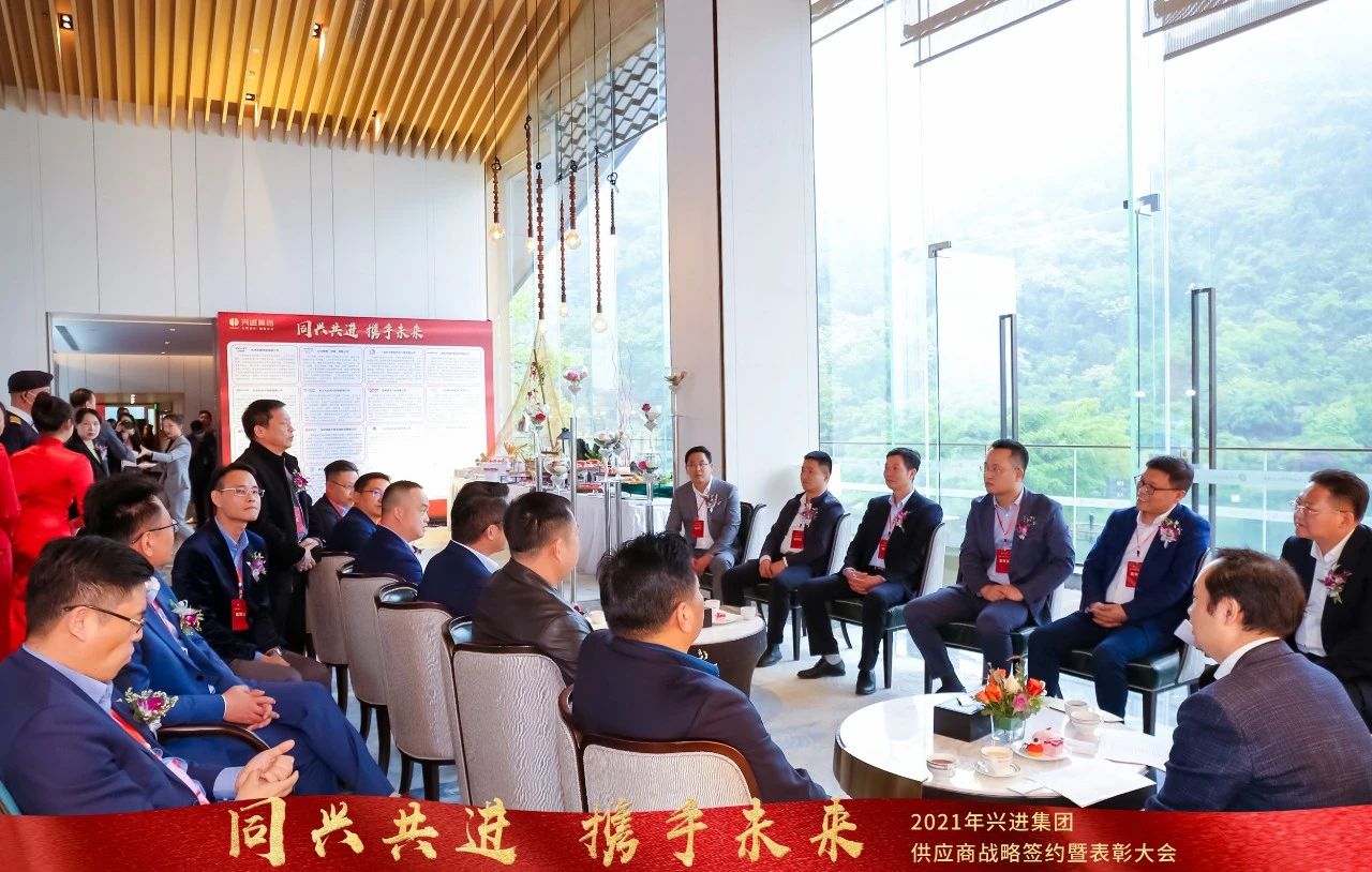 標桿項目實地參觀結束后,興進集團董事長兼總裁羅欣先生分別與戰(zhàn)略供應商代表、榮獲本屆大會"精誠合作獎"及"風雨同舟獎"的供應商代表進行了深入洽談,為雙方未來的友好合作、深度合作、共贏發(fā)展指明了方向。