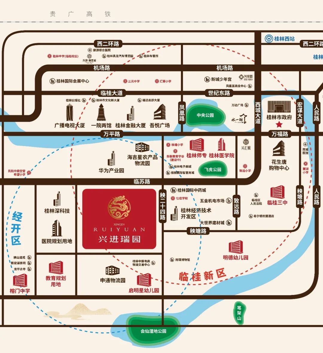 興進(jìn)·瑞園占位千億經(jīng)開區(qū)核芯華為科技城旁,是興進(jìn)集團(tuán)攜手經(jīng)開區(qū)強(qiáng)強(qiáng)聯(lián)袂打造力作。項目占地面積約7萬㎡,總建筑面積約20萬㎡,集住宅、公寓、商業(yè)于一體,低至2.5容積率,高達(dá)30%綠化率,百米奢闊樓間距,超大開闊中央景觀;自帶約2萬㎡一站式風(fēng)情商業(yè)街,打造全齡段人性化生態(tài)社區(qū),匠筑低密度舒適人居范本。未來周邊約12萬人口聚集于此!搶占桂林投資價值洼地。