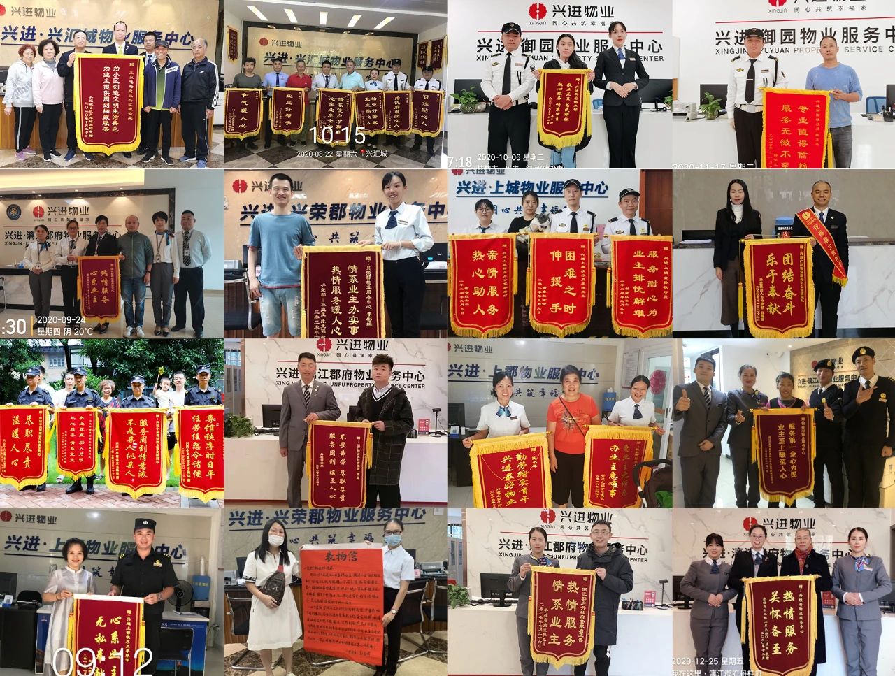 興進物業(yè)人到底幫助了多少業(yè)主?這里有一則有溫度的數(shù)據(jù),在2020年一年時間,興進物業(yè)共為業(yè)主做了12080多件好事,收獲錦旗424面,表揚信463封,幾乎每一天都收到業(yè)主的贊揚和肯定。