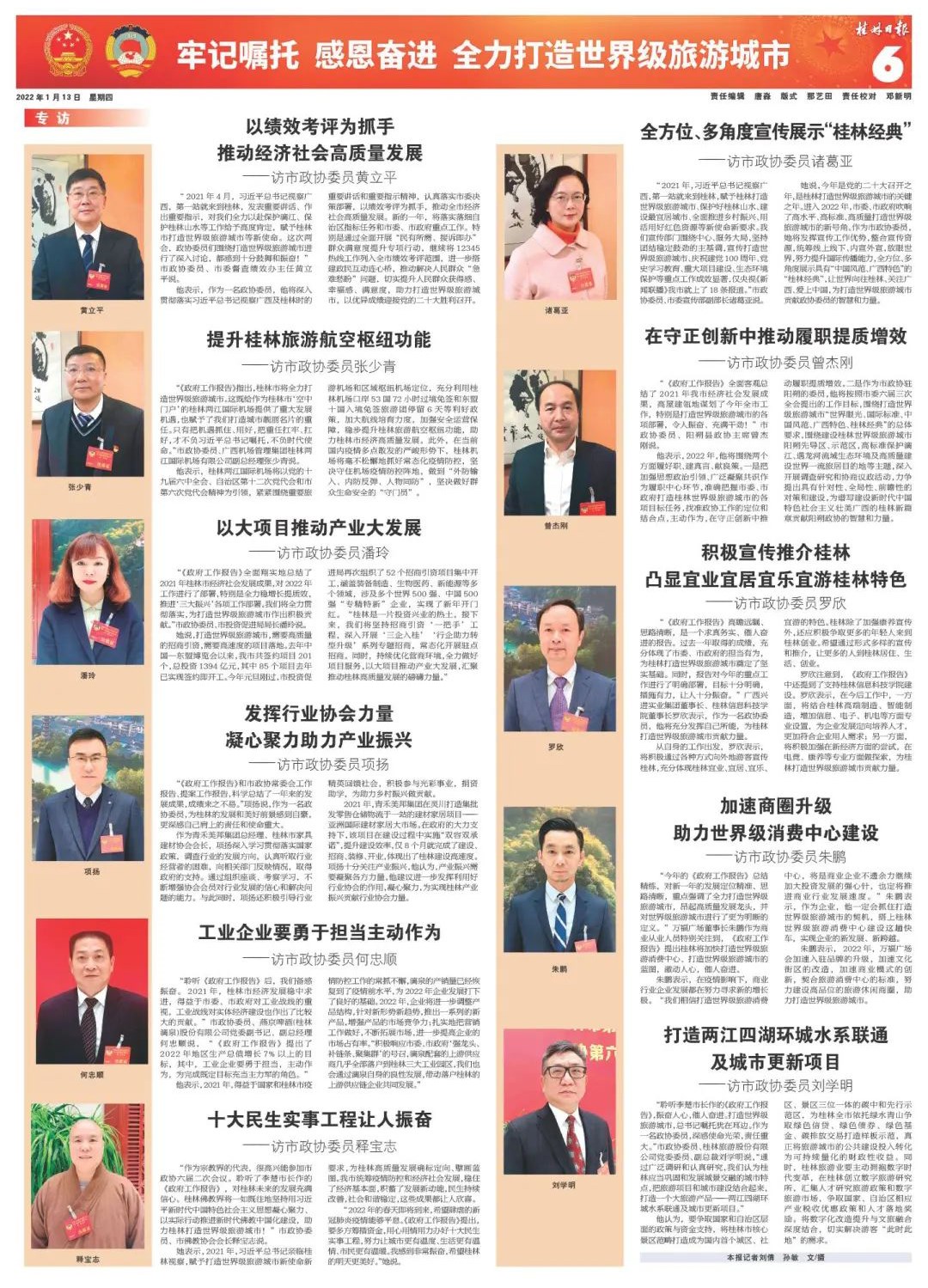 1月13日,桂林日?qǐng)?bào)整版刊發(fā)部分桂林市政協(xié)委員為建設(shè)世界級(jí)旅游城市建言獻(xiàn)策專題報(bào)道,版面如下。