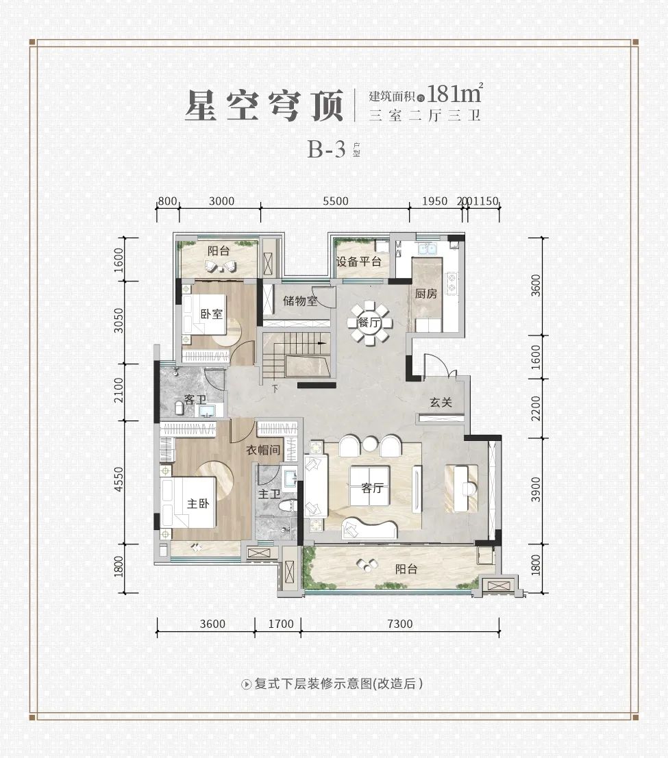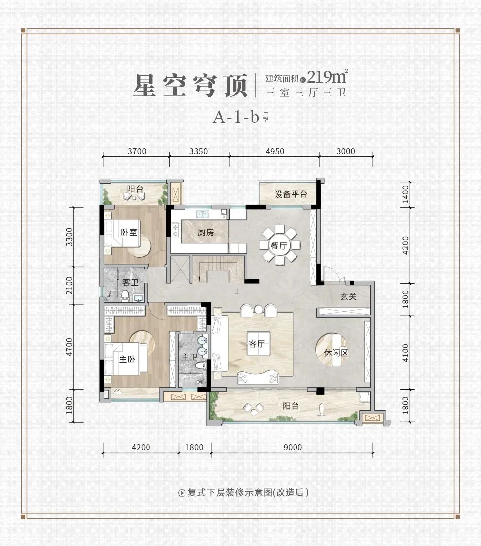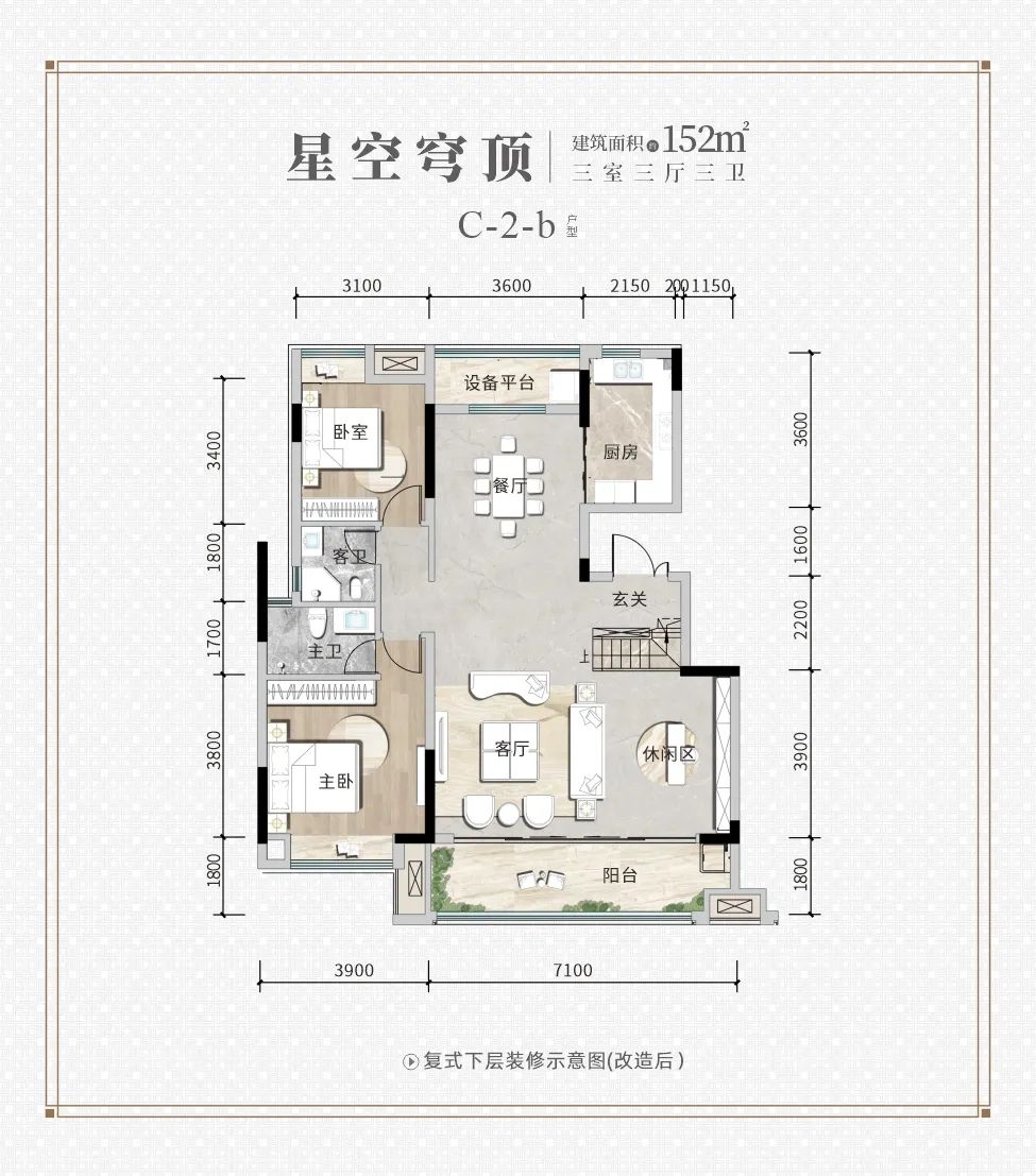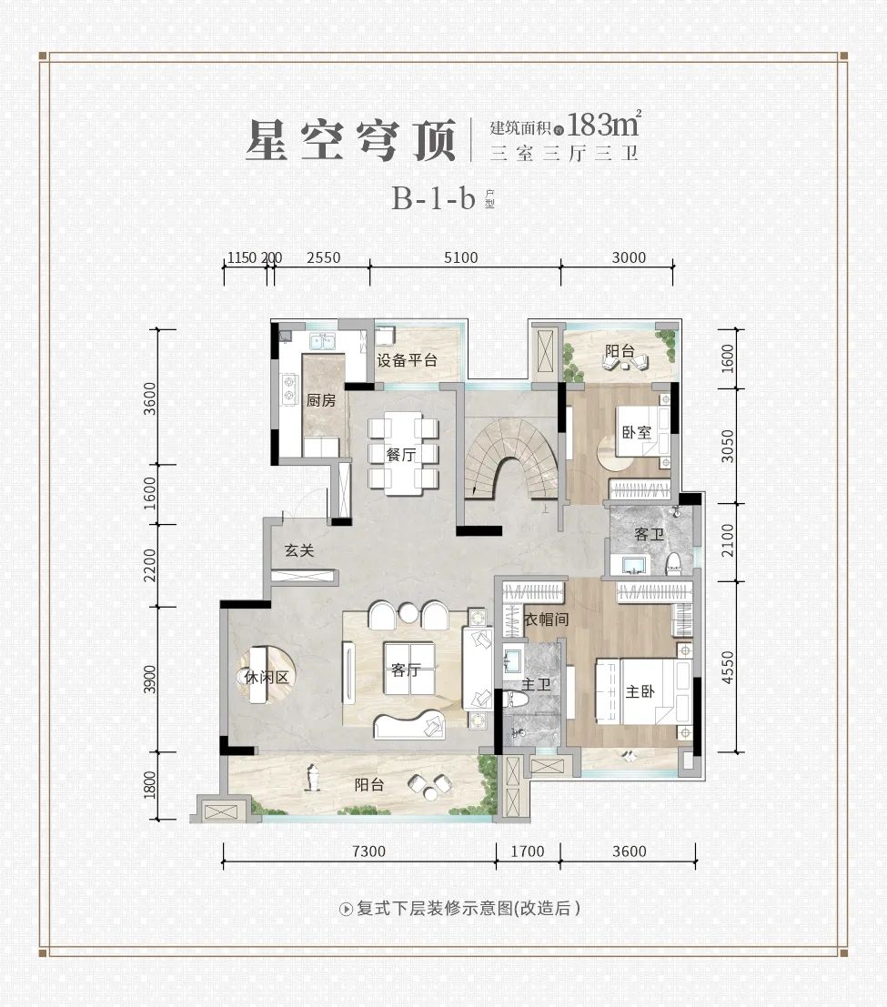 【星空穹頂】戶型帶給我們的,是空間層次與功能表現(xiàn)的迭代,也是生活全新享受的開始。讓生活與期待共生,將調(diào)動情緒與情感滿足的細(xì)節(jié)點綴其中,鏈接起心中最本真的生活樂趣。