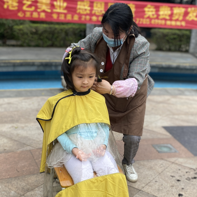 業(yè)主們早早的就在理發(fā)服務的臺前排起了長隊,不少都是沖著興進Tony的手藝來的。對于老人和小孩來說,這種便捷的理發(fā)方式,為他們省去很多麻煩。