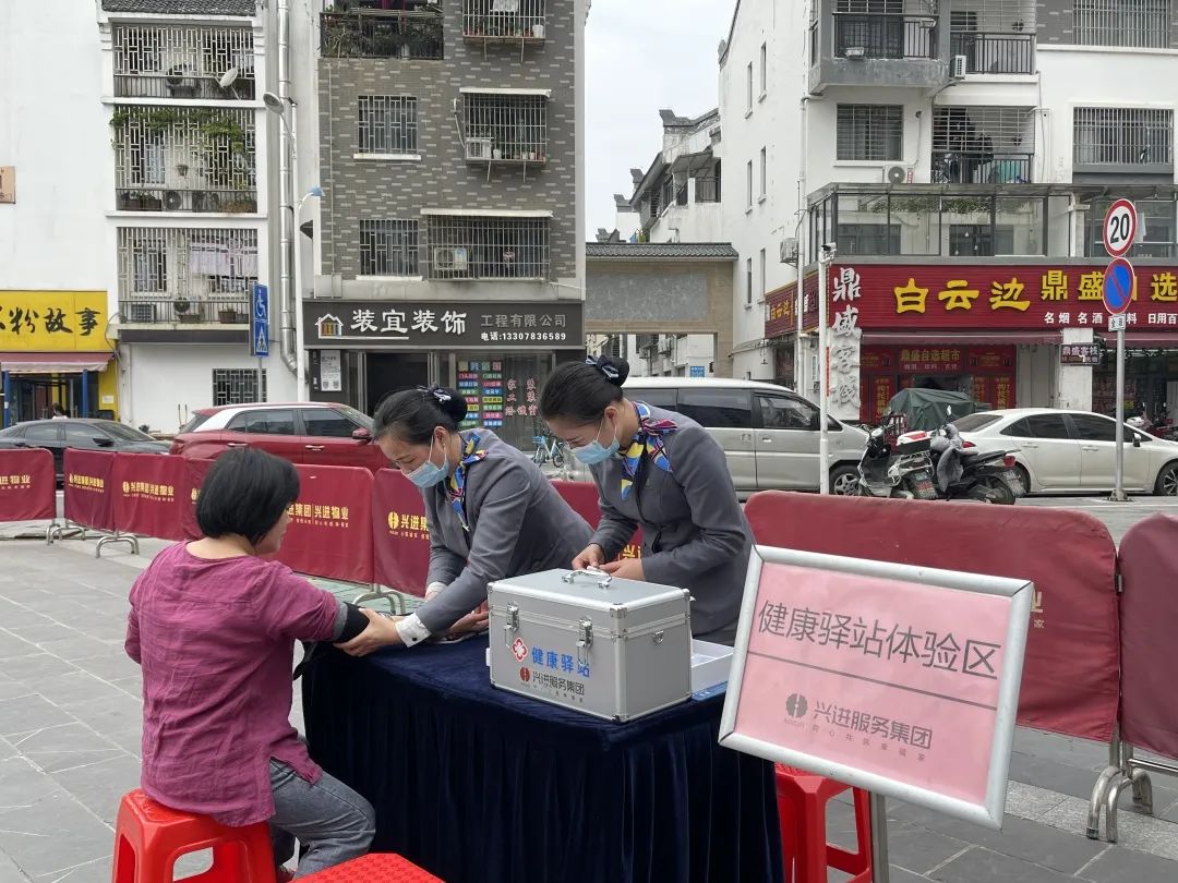 除了慣例的便民活動外,興進服務集團的特色增值服務——健康驛站康養(yǎng)服務,在漓江郡府和漓江壹號也是好評不斷。契合國家"康養(yǎng)政策",讓簡單的"老有所養(yǎng)"升級成"老有頤養(yǎng)"。定制個性化照護方案,提供檢測血壓、血氧、血糖、尿酸等十大服務,在咫尺之距就能享受到專業(yè)便捷的服務。