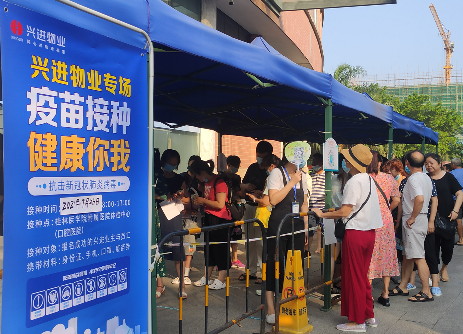 為了保證更多的業(yè)主和員工能及時(shí)安全地接種疫苗,興進(jìn)服務(wù)集團(tuán)立即發(fā)出指示要求各項(xiàng)目統(tǒng)計(jì)接種疫苗人數(shù),與防疫部門(mén)對(duì)接,開(kāi)展疫苗接種專場(chǎng)活動(dòng),這也是桂林本土第一家物業(yè)申請(qǐng)開(kāi)展的疫苗接種專場(chǎng),深受業(yè)主與員工的肯定。