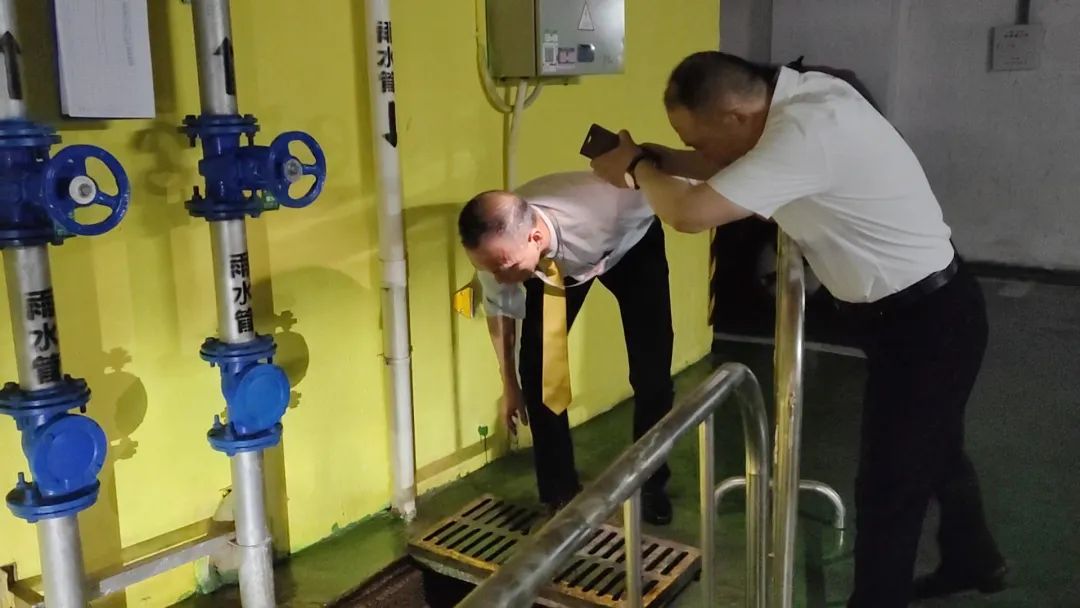 ▲物業(yè)團(tuán)隊連夜巡查、接泵排水