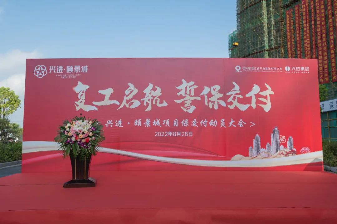 經(jīng)過興進(jìn)集團(tuán)和桂林新城投資開發(fā)集團(tuán)雙方的不懈努力,克服重重困難,于2022年7月8日經(jīng)仲裁解除項目與廣西區(qū)五建勞動合同 ,項目重新進(jìn)行總包招標(biāo)后,今天終于順利實現(xiàn)全面復(fù)工。