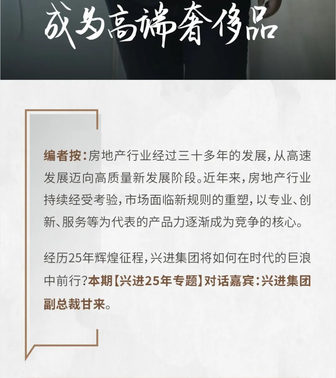 興進(jìn)25年 對(duì)話興進(jìn)集團(tuán)副總裁甘來:讓中式建筑成為高端奢侈品