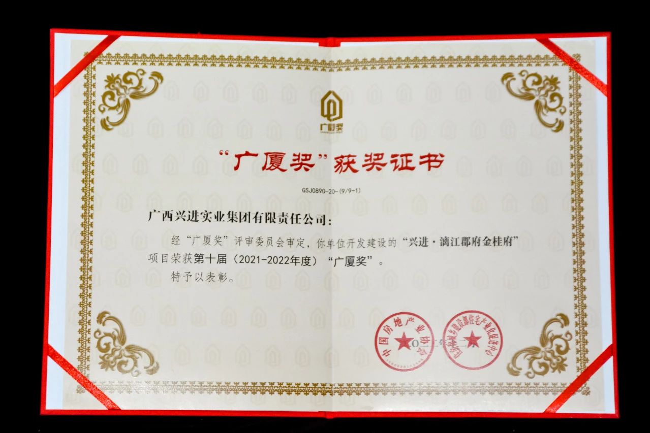 興進集團憑借穩(wěn)健經(jīng)營和市場的高度認可,榮獲廣西地產(chǎn)穩(wěn)健發(fā)展企業(yè)大獎,同時入圍"2022年廣西房地產(chǎn)本土房企權(quán)益銷售金額"TOP20榜單,位列第三;興進·漓江郡府榮獲"2022年廣西地產(chǎn)各市縣標桿項目"獎項。