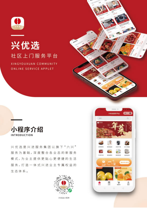 與此同時,興進物業(yè)探索"物業(yè)+生活"的服務模式,從業(yè)主需求出發(fā),打造出自己的物業(yè)增值服務新亮點。為滿足業(yè)主的家裝需求,聯(lián)合商家升級美居服務;通過線上線下租賃"興中介"平臺,為業(yè)主提供個性化的中介服務;基于社區(qū)購物需求及日常生活所需,整合優(yōu)質資源,通過線上平臺"興優(yōu)選"為業(yè)主帶來更便利優(yōu)質的購物、家政體驗。
