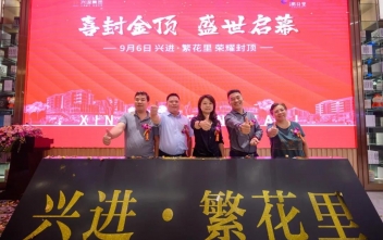 興進(jìn)·繁花里封頂儀式在項(xiàng)目營銷中心隆重舉行,興進(jìn)集團(tuán)副總裁兼商業(yè)公司總裁尹靜、興進(jìn)集團(tuán)商業(yè)開發(fā)公司總經(jīng)理盧永發(fā)、廣西五建一分副總經(jīng)理鄧玉光、桂工監(jiān)理副總經(jīng)理徐勝芳、興進(jìn)繁花里業(yè)主代表及各主流媒體蒞臨現(xiàn)場觀禮,共同見證這一激動(dòng)人心的時(shí)刻。